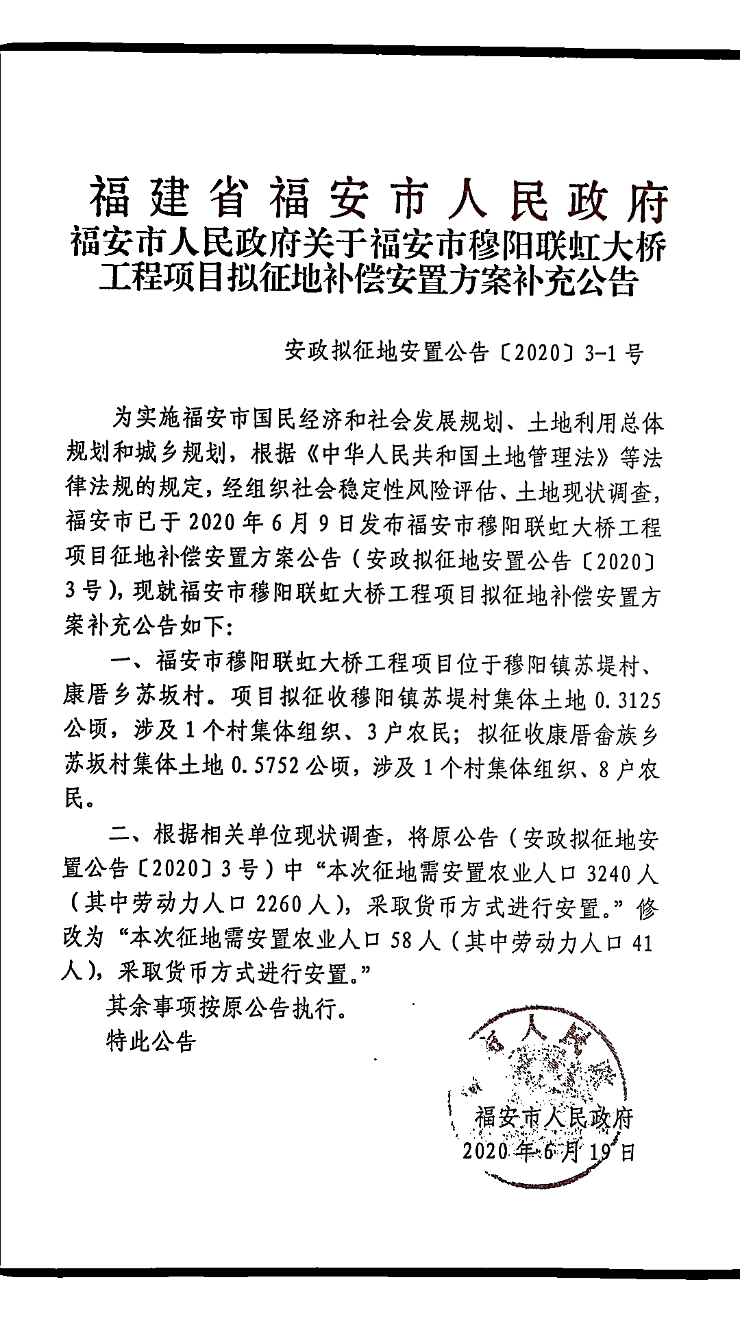 (征收土地信息)福安市beat365官网下载_怎么无限注册365游戏账号_365bet体育35元关于福安市穆阳联虹大桥工程项目的拟征地补偿安置方案补充公告