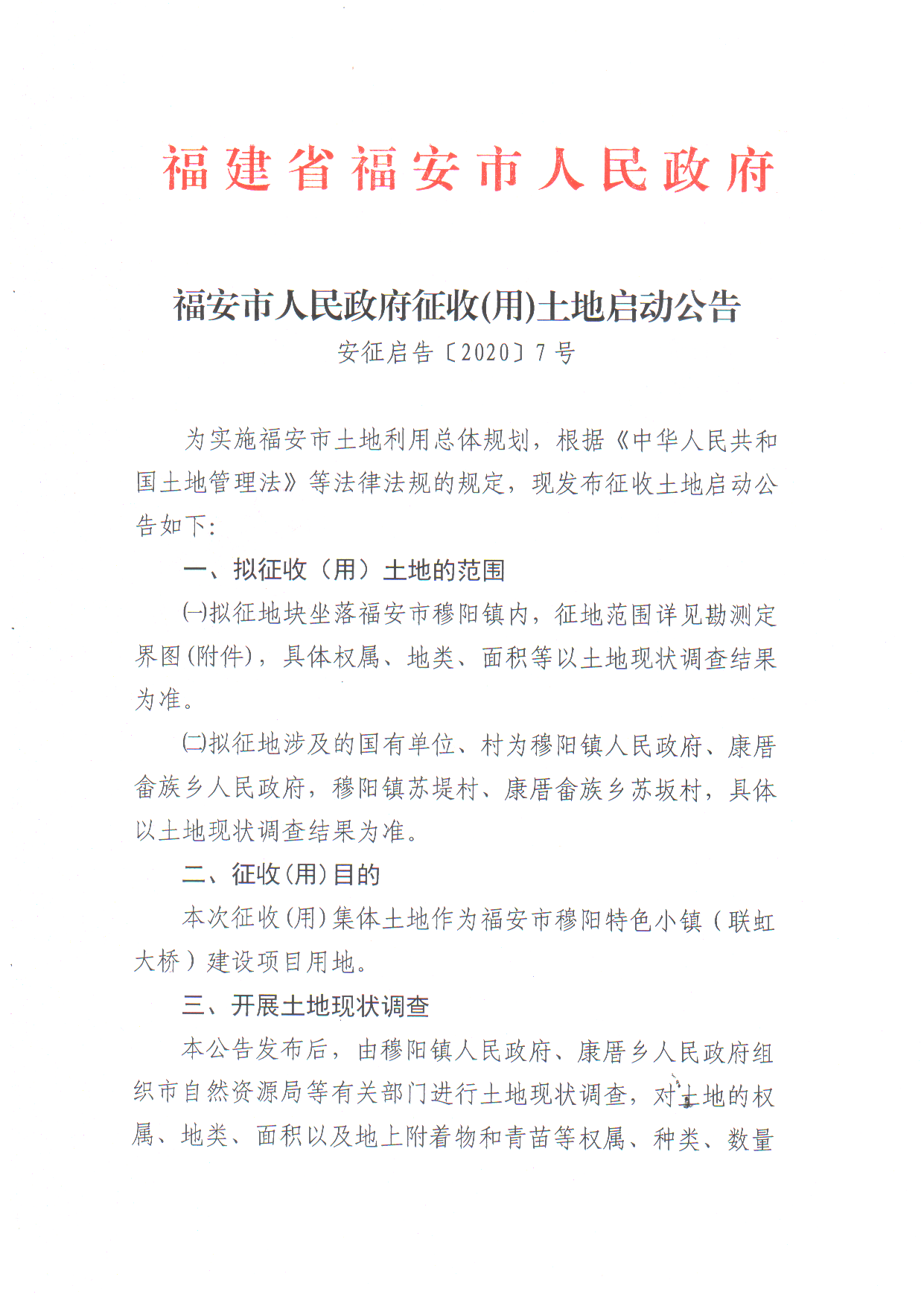 (征收土地信息)福安市beat365官网下载_怎么无限注册365游戏账号_365bet体育35元关于穆阳镇的征收(用)土地启动公告