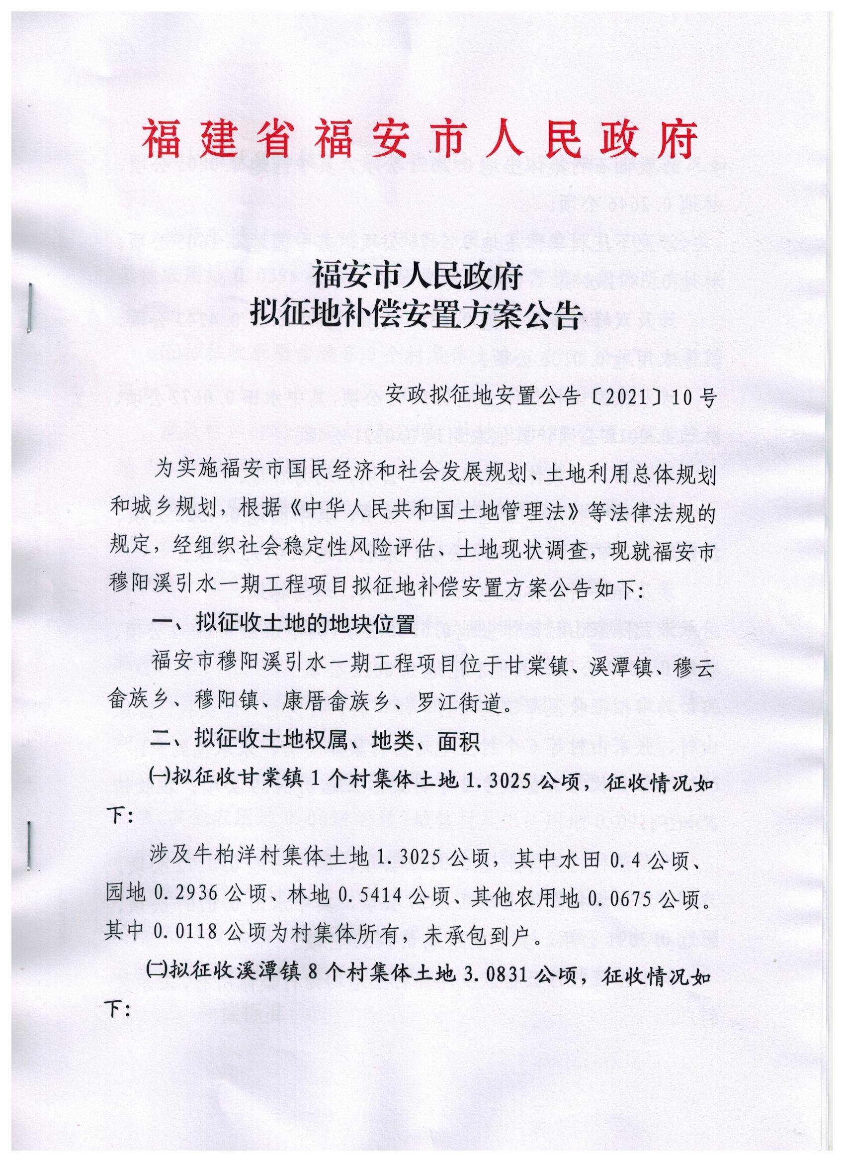 (征收土地信息)福安市beat365官网下载_怎么无限注册365游戏账号_365bet体育35元关于福安市穆阳引水一期工程项目的拟征地补偿安置方案公告